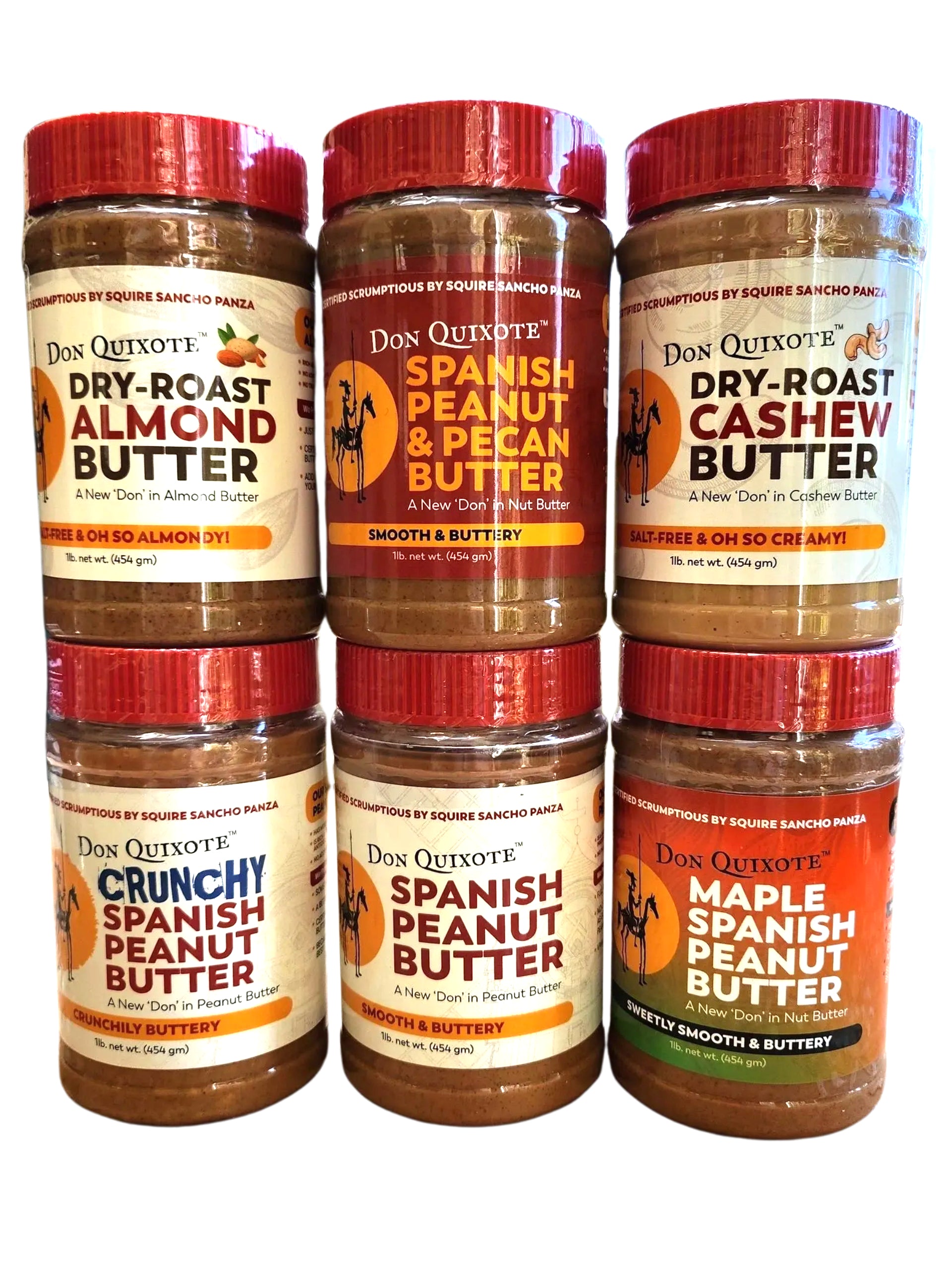 Big family? Keep everybody happy. Lots of Friends? Everybody gets a tasty gift. Peanut butter lover? Tanatalize your taste buds. Whatever the reason, this is your chance to indulge...and save money at the same time. Save $10.25 when you order The Full Monty and get a jar of each of Don Quixote's certified scrumptious nut butters.